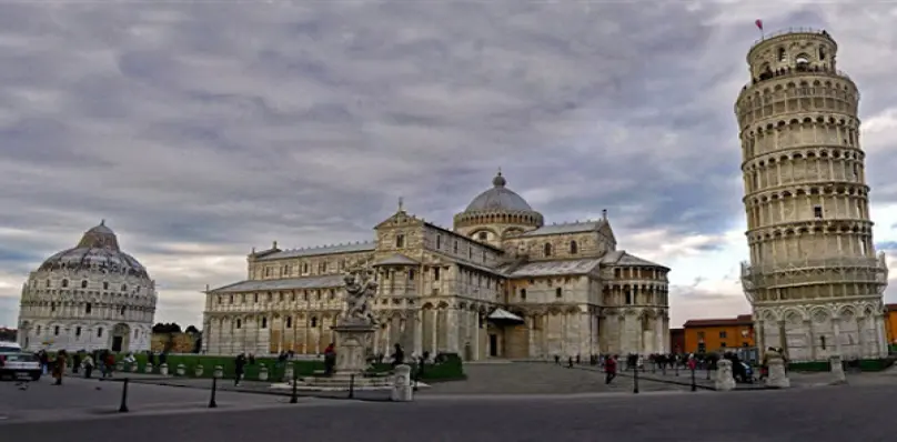- Today start the journey to Pisa. On arrival, marvel at The Piazza del Duomo (Cathedral Square) which is dominated by four great religious structures: the Duomo, Leaning Tower of Pisa, Baptistry and the Camposanto. Enjoy some free time here to buy souvenirs for friends and family. In the afternoon, continue the journey to Geneva. Here be taken on a short city tour to see the United Nations Building, The Flower Clock and the symbol of Geneva, the Jet d’Eau (weather permitting).