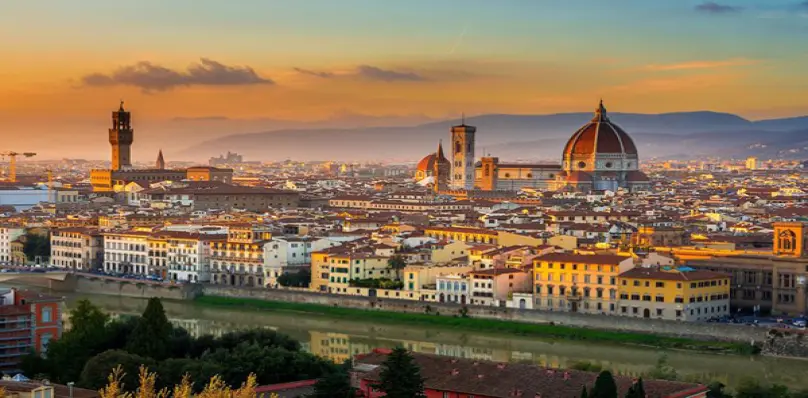 - Depart for Florence. On arrival, be greeted by your local professional guide. The tour of this renaissance city starts by viewing the impressive architecture of some of the finest historic buildings in Italy, such as the Duomo of Florence the largest brick dome ever created, along with photo stops at Basilica of Santa Croce, the final burial place of Michelangelo, statue of David replica, famous Ponte Vecchio Bridge on the Arno River and The Piazelle Michelangelo, for the most outstanding views of Florence. Later proceed onto Pisa. On arrival, marvel at The Piazza del Duomo (Cathedral Square) which is dominated by four great religious structures: the Duomo, Leaning Tower of Pisa, Baptistry and the Camposanto. Enjoy some free time here to buy souvenirs for friends and family. (As coaches are restricted to enter many parts of Florence, much of the tour is done on foot). Breakfast Y Lunch Y Continental Dinner Y